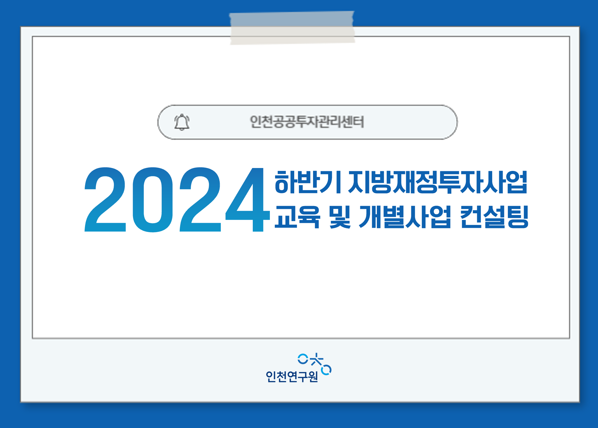 개최 배경 및 목적 o 지방 또는 중앙 투자심사 사업에 대하여, 투자심사 이전 또는 타당성조사 준비중, 투자심사 이후 사업 추진 과정에서 추가로 검토할 사안이 있는 사업을 대상으로 컨설팅(맞춤형 자문) 진행 o 해당 사업이 원활히 추진될 수 있도록 본 행사를 실시하며, 시·군·구 유관부서(사업부서 등) 공무원에게 지방재정투자심사 업무 절차 및 심사의뢰서 작성 등의 교육을 시행함으로써 실무 담당자의 이해도 증진 및 지방재정투자심사 내실 향상 도모 행사개요 o 일시 : 2024년 11월 13(수)~14(목) o 장소 : 인천시청 소통, 나눔회의실 외 o 주제 : 투자심사 관련 교육 및 재정투자사업 컨설팅 o 행사진행 : 대면교육 및 대면 컨설팅 o 주최 : 인천광역시(재정관리담당관실), 인천연구원 o 강사 : 인천공투센터, 한국지방행정연구원 지방투자사업관리센터(LIMAC) - (개회 및 강연) : 인천공공투자관리센터, LIMAC 박사 - (개별사업 컨설팅) : 인천공공투자관리센터, LIMAC 박사- 등록일 2024.11.15