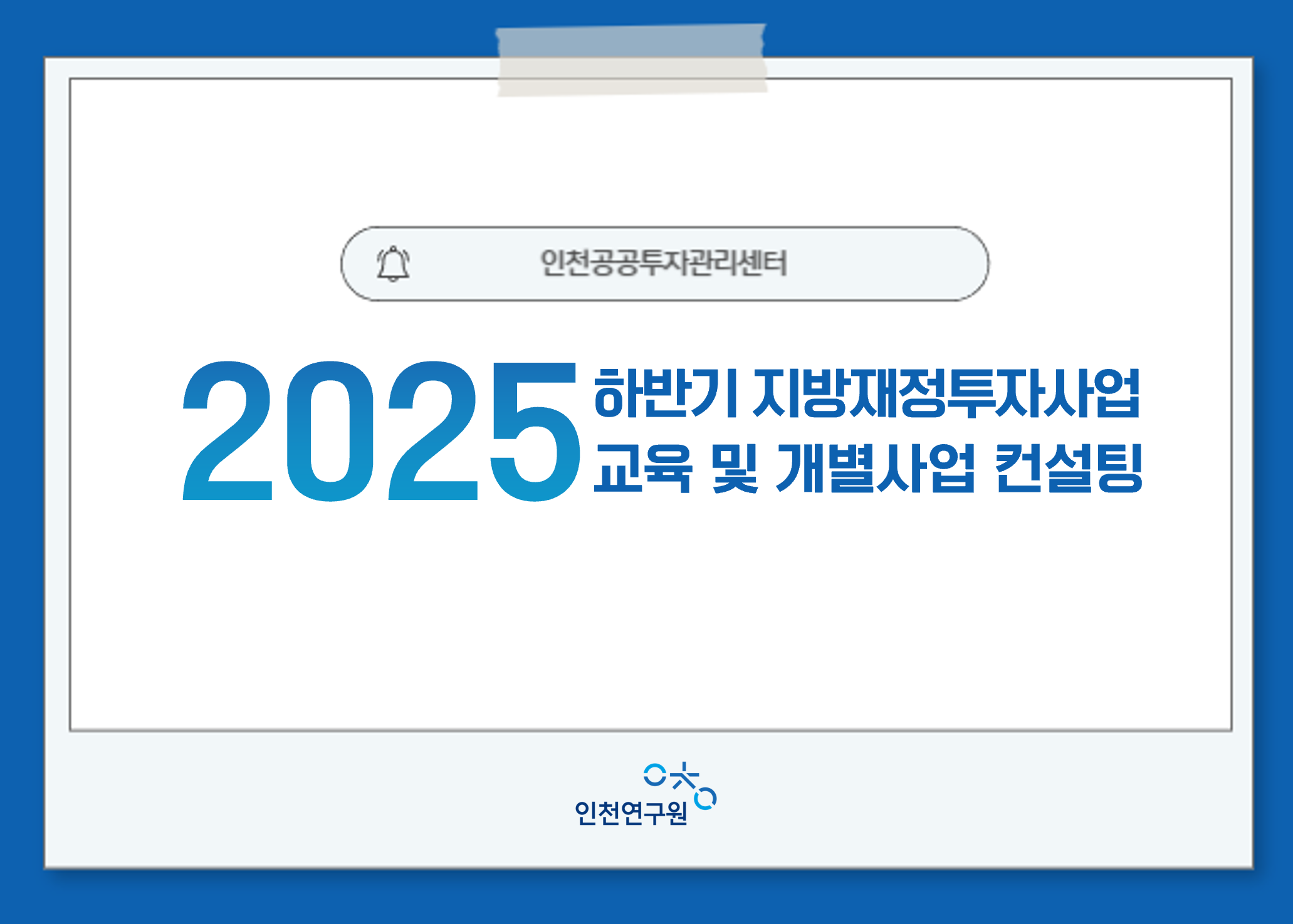 개최 배경 및 목적 o 지방 또는 중앙 투자심사 사업에 대하여, 투자심사 이전 또는 타당성조사 준비중, 투자심사 이후 사업 추진 과정에서 추가로 검토할 사안이 있는 사업을 대상으로 컨설팅(맞춤형 자문)을 진행함으로써 해당 사업이 원활히 추진될 수 있도록 본 행사를 실시함 o 이와 더불어 시·군·구 유관부서(예산실 및 사업부서 등) 공무원에게 지방재정투자심사 업무 절차 및 개정된 매뉴얼 등의 교육을 시행함으로써 실무 담당자의 이해도 증진 및 지방재정투자심사 내실 향상을 도모함 o 본 행사에 접수한 컨설팅 사업 혹은 투자심사 사업에 대한 현장조사를 실시하고, 현황 파악 및 쟁점사항을 도출함 행사개요 o 일시 : 2025년 11월 13일(목)~14일(금) o 장소 : 인천경제자유구역청(G타워 8층 국제회의장 Broad Room) 외 o 주제 : 투자심사 관련 교육 및 재정투자사업 컨설팅 o 행사진행 : 대면교육 및 대면 컨설팅 o 주최 : 인천광역시(재정담당관실), 인천연구원 o 강사 : 인천공투센터, 한국지방행정연구원 지방투자사업관리센터(LIMAC), 한국지방재정공제회 지방투자분석센터(LOMAC), 재정성과연구원 - (개회 및 강연) : 인천공공투자관리센터, LIMAC - (개별사업 컨설팅) : 인천공공투자관리센터, LIMAC, LOMAC, LOMAC, 재정성과연구원- 등록일 2025.11.14