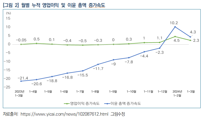 [경제] 2024년 1~3월 중국 규모이상 공업기업 이윤 총액